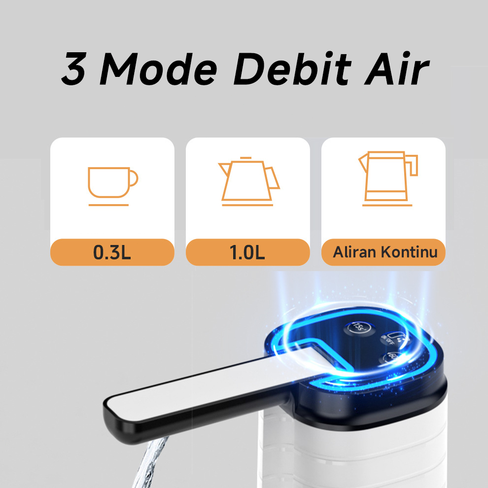 Kokohfit Pompa Galon Electrik Portabel / 3Mode Kuantitati Water Dispenser Auto Desain Lipat , USB-C , Lampu LED Biru - G