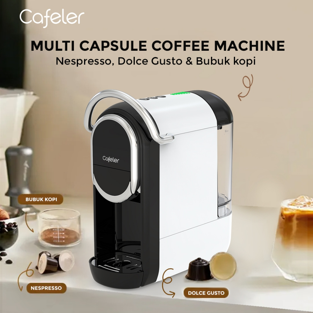 Cafeler Mesin Kopi Multi Kapsul 3IN1 Ekstraksi Hangat 7 Level Water Volume Capsule Coffe Maker 19Bar