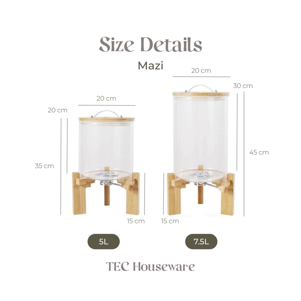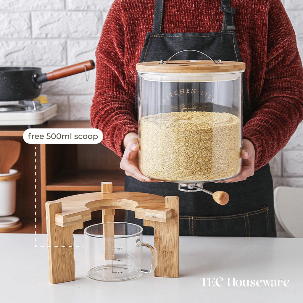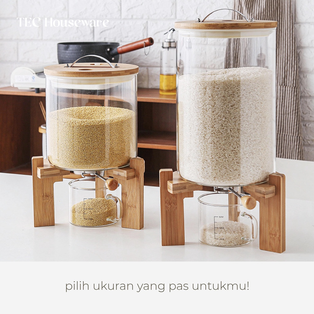 【TEC】MAZI Rice Dispenser Tempat Penyimpanan Beras Wooden Rice Dispenser Dispenser Beras Kayu Tempat Penyimpanan Biji