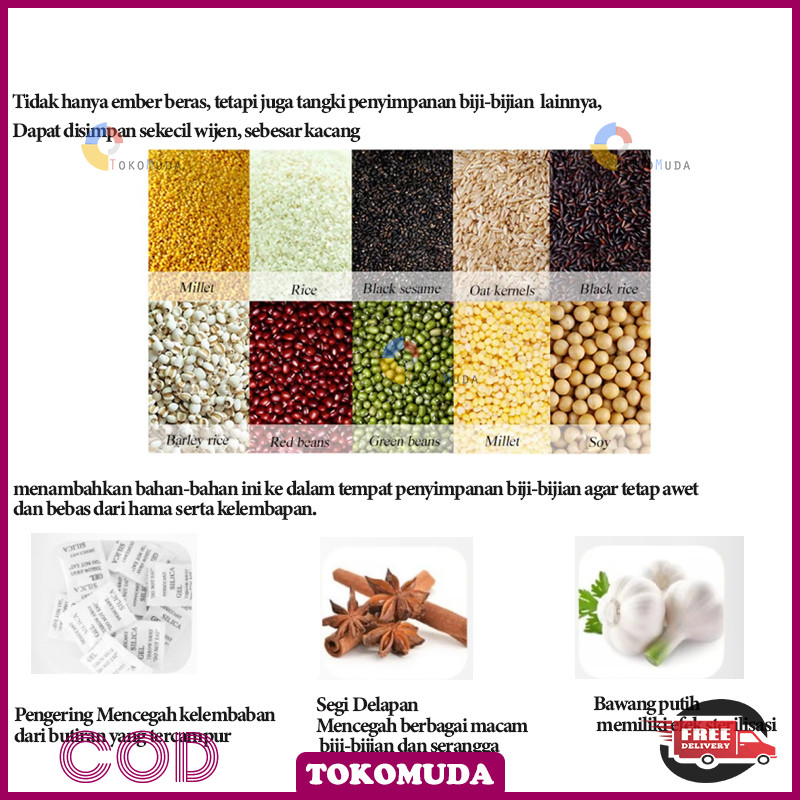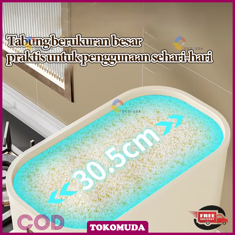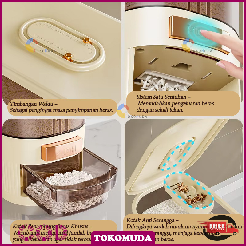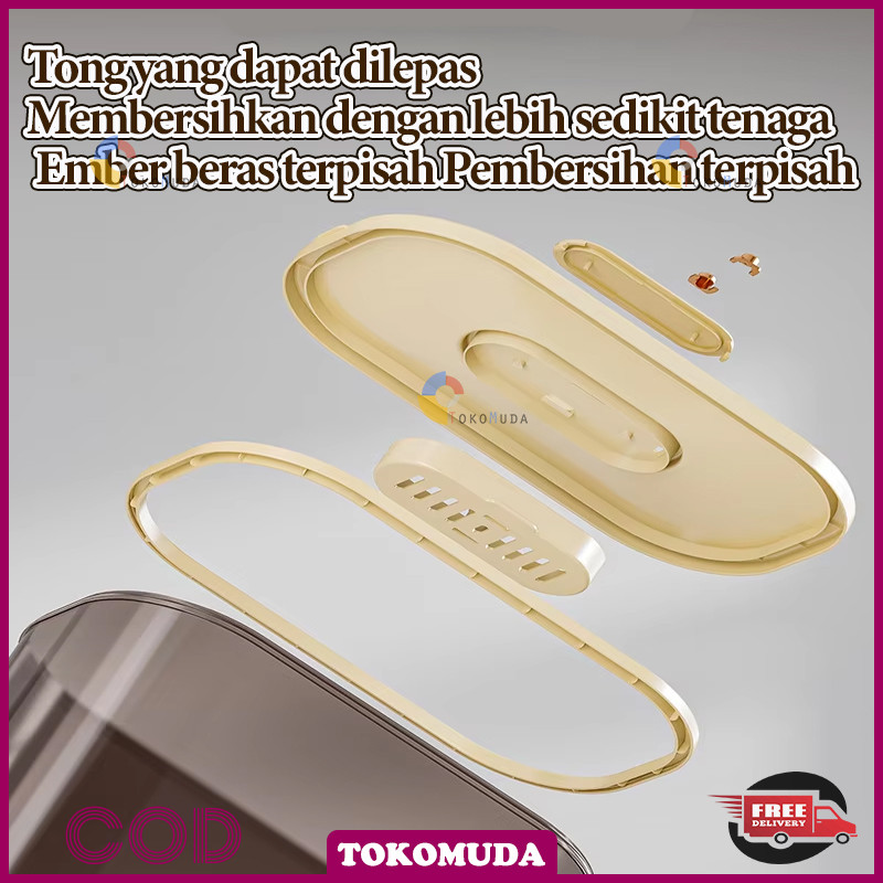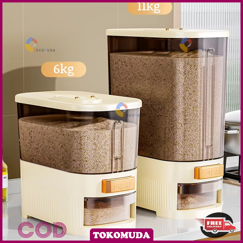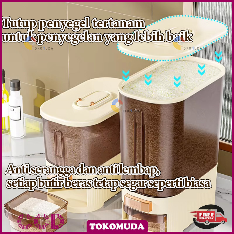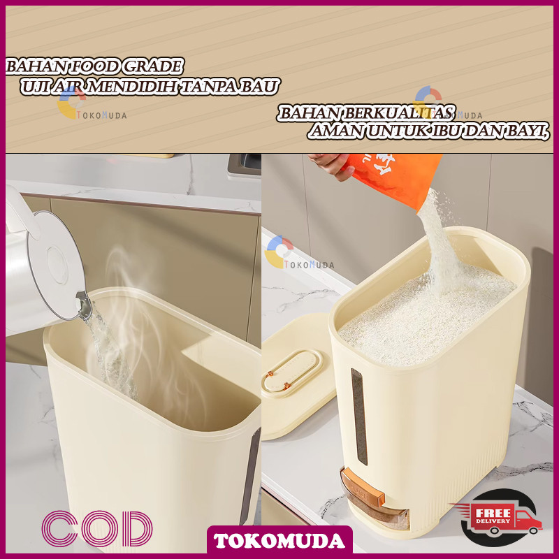Tomu Rice Bucket food grade otomatis wadah beras anti lembab Dispenser beras One Touch food storage