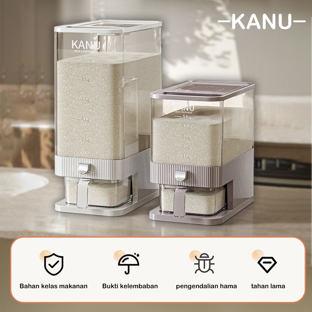 5 Kg/10 Kg Dispenser Beras Otomatis Dispenser Beras Mewah Estetik Kotak Tempat Wadah Penyimpanan Beras Rice 5Kg 10Kg Te
