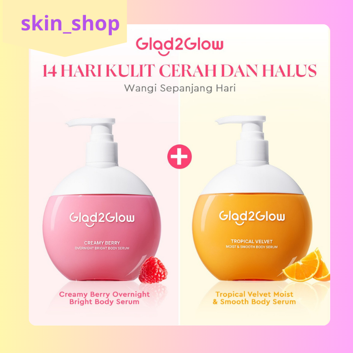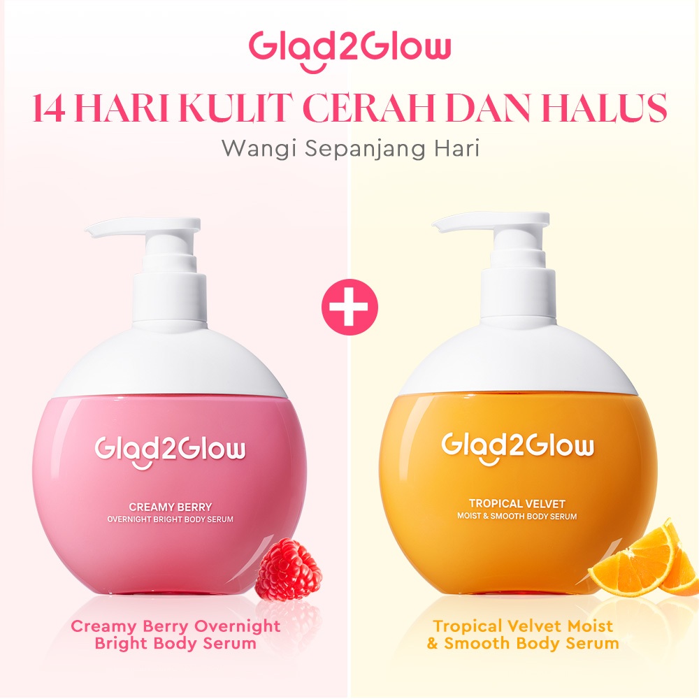 [Mall] Glad2Glow Creamy Berry Overnight Bright Body Serum 300ml Body Cream BodyLotion&G2G Tropical Velvet Moist&Smooth