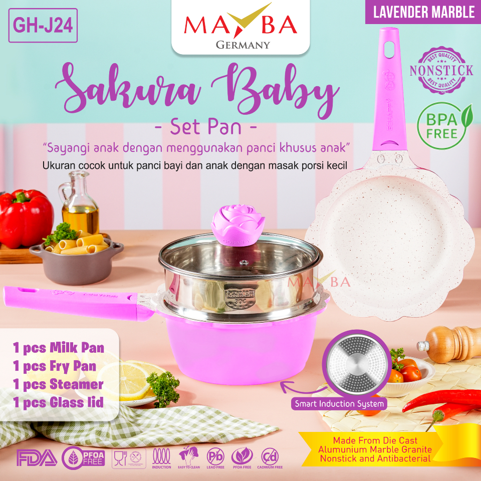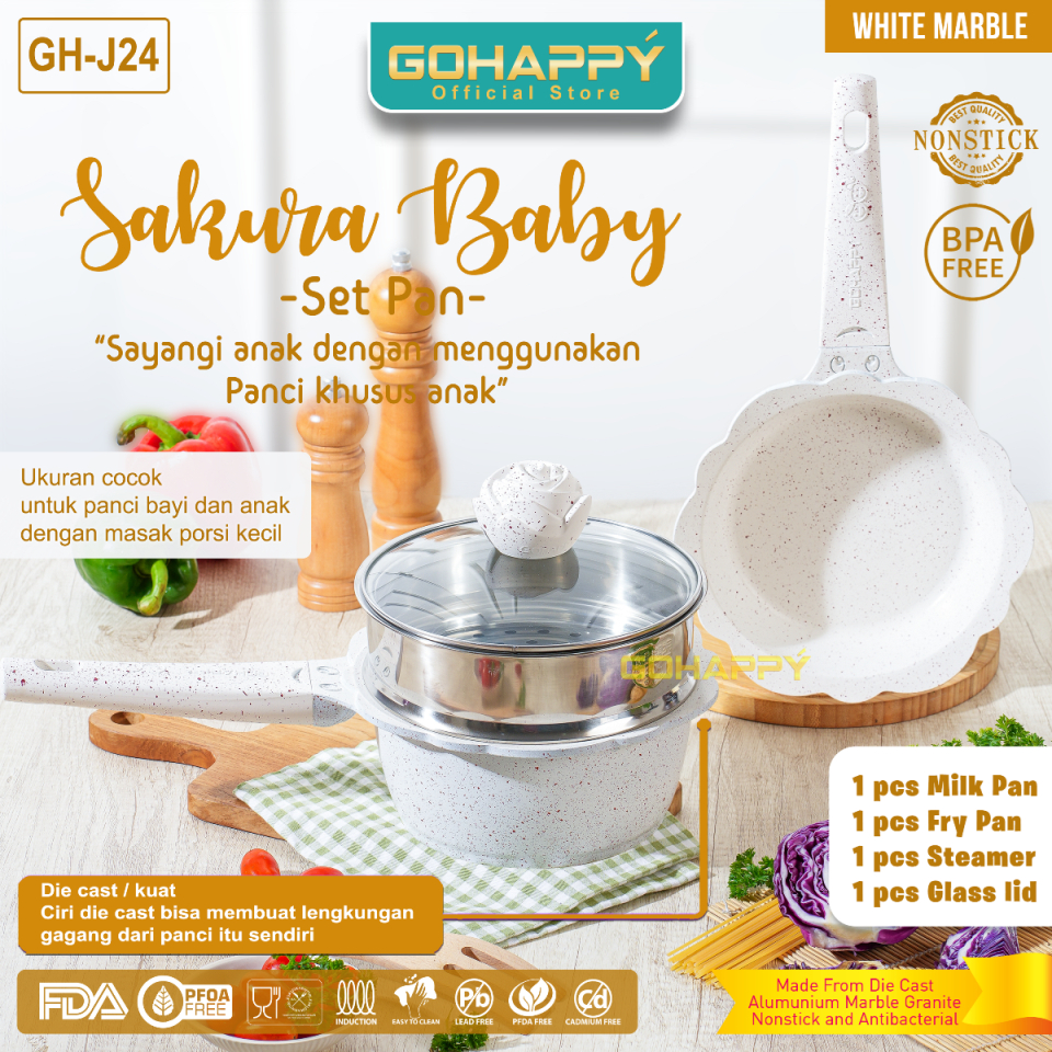 BONUS KUKUSAN Panci Set Mayba Gohappy Panci Bayi Sakura Flower Healthy Biru mpasi bayi susu frypan mini marble keramik