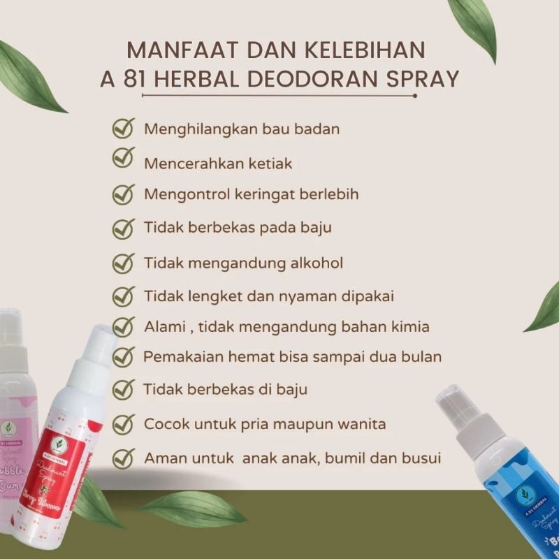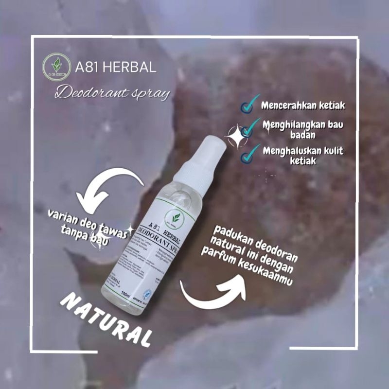 (BPOM) A81 HERBAL DEODORANT SPRAY NATURAL ORIGINAL (TAWAS CAIR)
