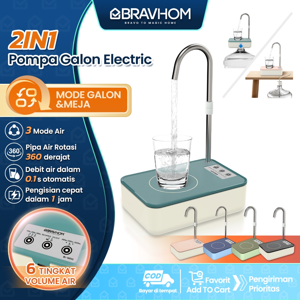 BRAVHOM Dispenser Air Minum Kontrol Cerdas Pompa Galon 2in1 Meja/Bak Luar Ruangan Kantor Rumah WD13