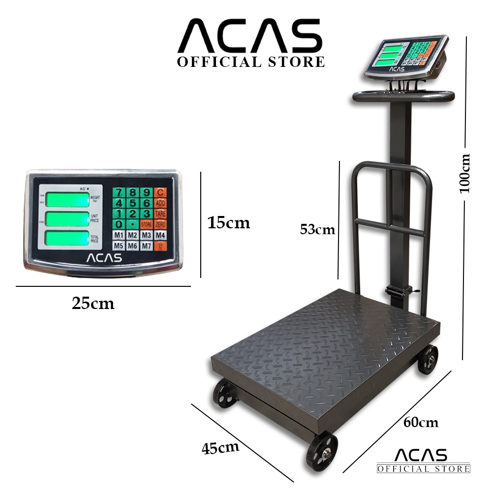 ACAS Tcs 600Kg / 4Kg Timbangan Duduk Digital Single Double Display Pagar Lipat Barang