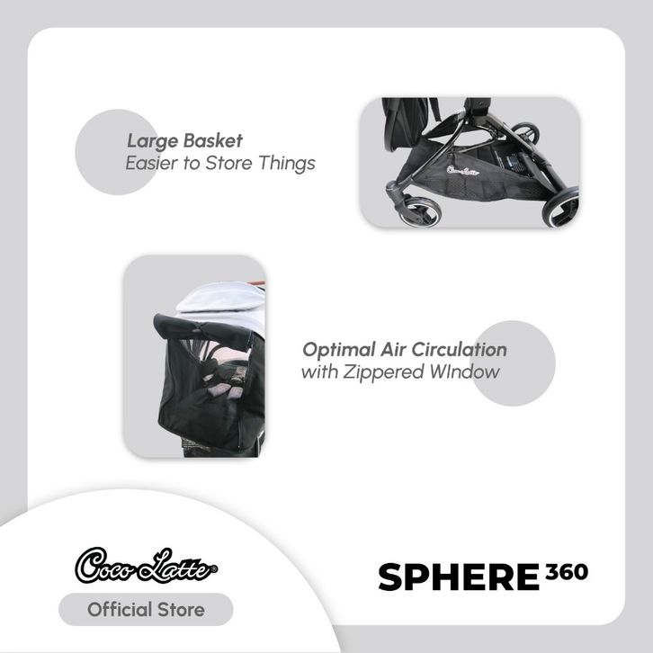 Cocolatte Sphere 360 Stroller Dengan Canopy Zippered Windows