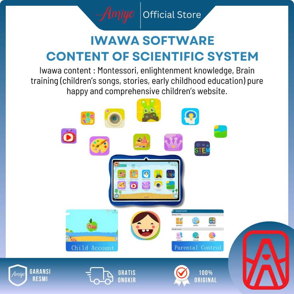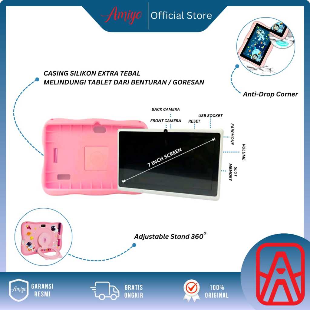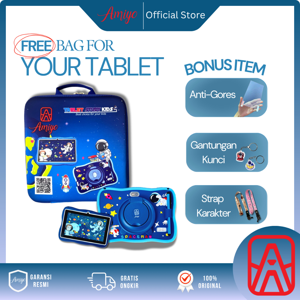 Amiyo Tab Study Kids A15 With Bag Tablet Anak Tablet edukasi 7 inchi wifi/hotspot only Tablet Astronout