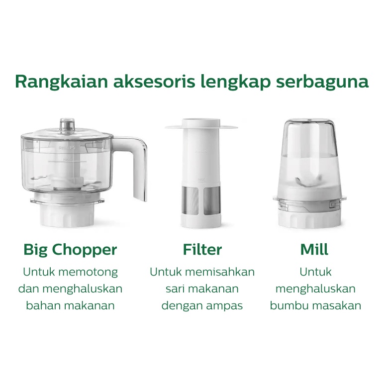 PHILIPS HR2223 Blender Plastik 2L 4in1 + Multi Accessory HR 2223 Resmi