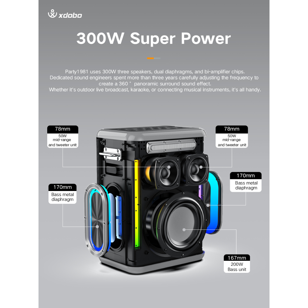 SPEAKER XDOBO FULL BASS PARTY 1981 300W HIGH-POWER BLUETOOTH SPEAKER