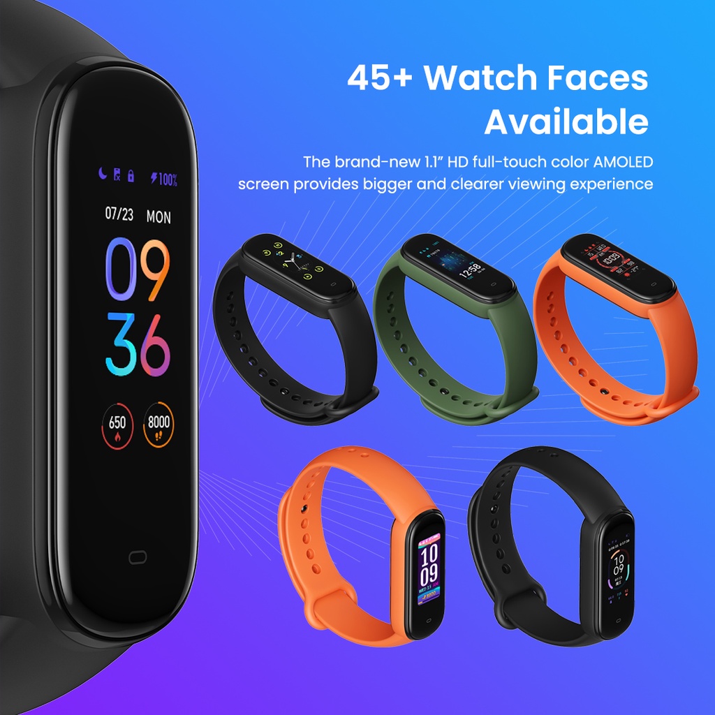 Amazfit Band 5 Activity Fitness smartwatch 1.1" HD AMOLED Always-On display, SpO2, jam tangan with Heart Rate, Sleep, St