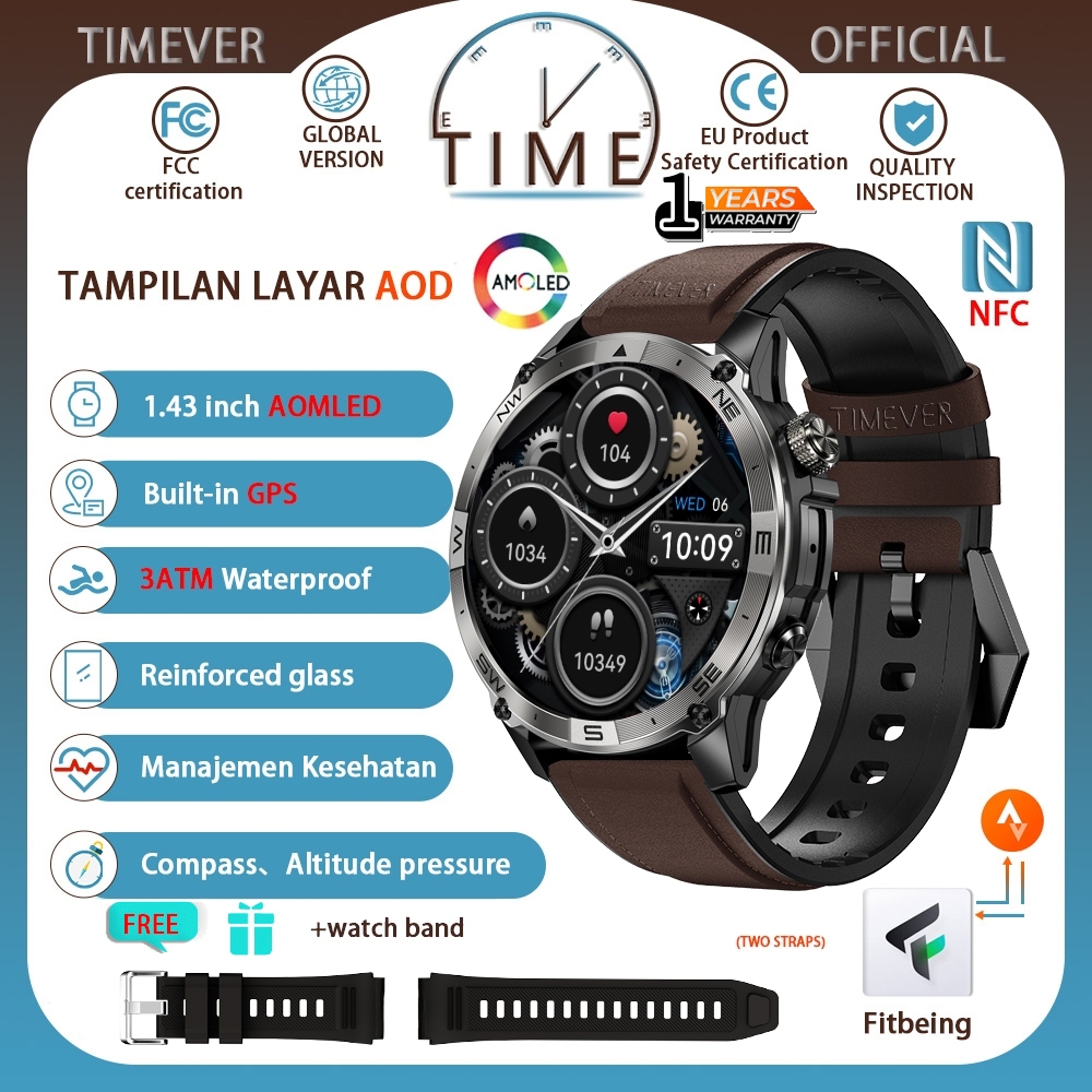 TIMEVER TR1 Built-in GPS Layar AOD smartwatch 3ATM Ketinggian Tekanan Udara NFC Kompas Jam Tangan Olahraga Outdoor Prof