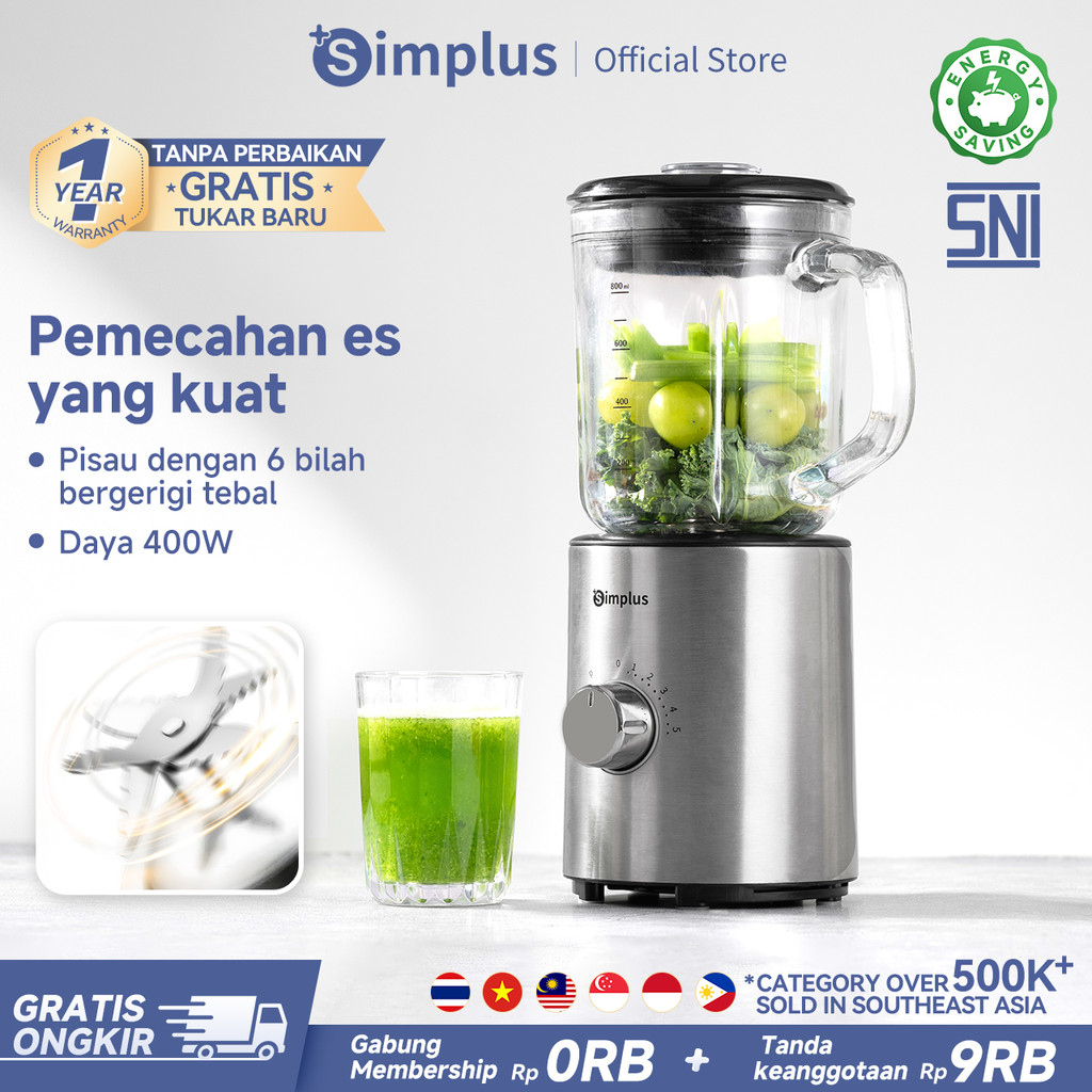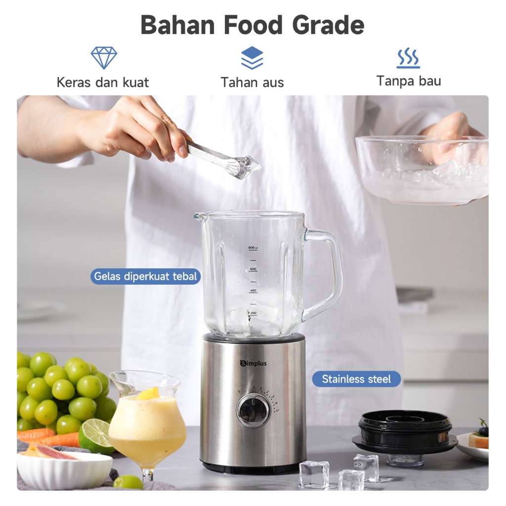 Blender Makanan Simplus 5 mode pengaturan multifungsi, 6 bilah pisau stainless steel 304