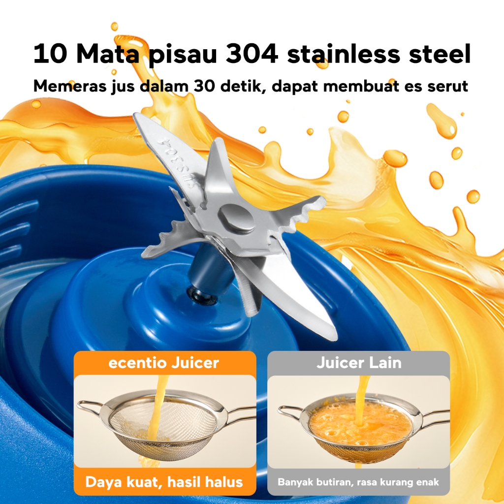 ecentio Blender Mini Portable Juicer kaca gelas Chopper kecil bumbu kapsul jus buah 10 mata pisau tanpa Stainless 304 Ta