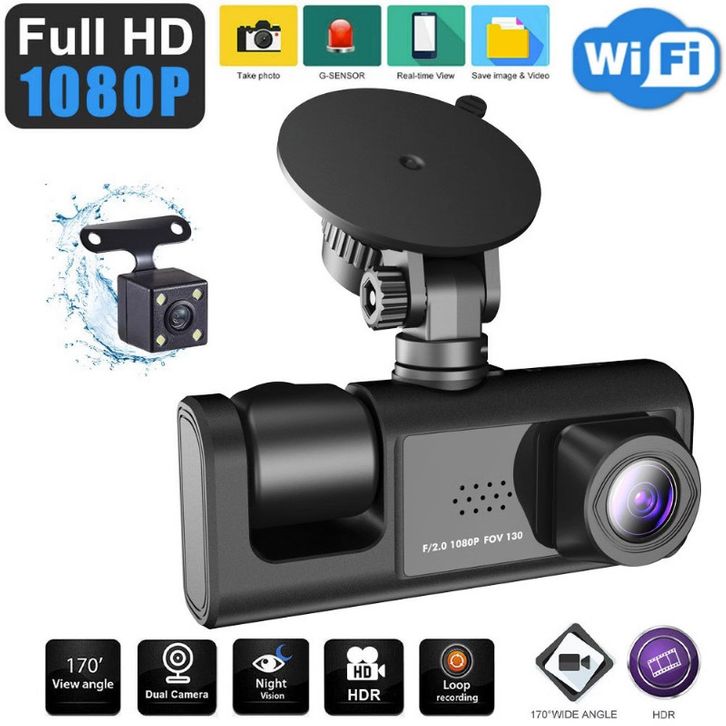Kamera Parkir 3 Channel Dash Cam Untuk Perekam Video Kamera Mobil Dashcam DVR 1080P DVR Kotak Hitam DVR Lensa Ganda Den
