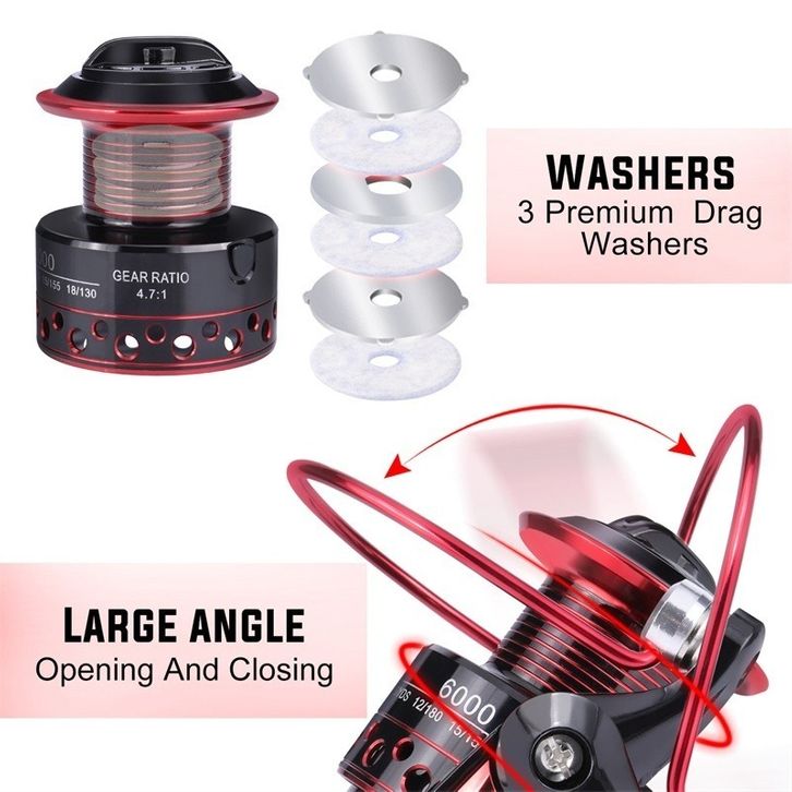 Sougayilang Reel Pancing 2000-7000 13BB Spinning Aluminium Reel dengan Free Line Fishing Pulley Handle Max Drag 15kg