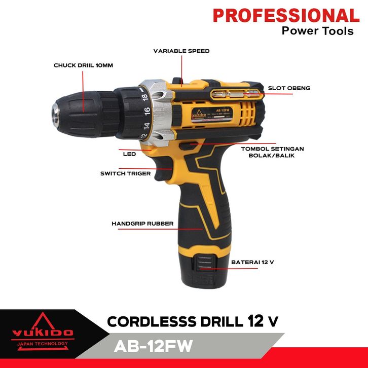 PROMO TERMURAH !!! bor tangan batrai/bor cas murah promo /bor mini 10 mm Baterai 12V Plus Acc ORIGINAL YUKIDO