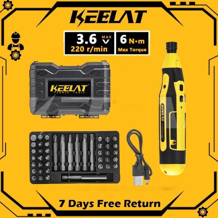 KEELAT 42PCS Mini Mesin Bor Cordless Screwdriver Obeng Baterai 4.2V