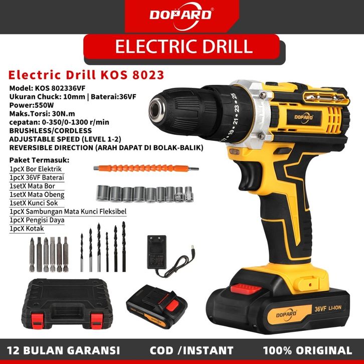 DOPARD 8023 Obeng baterai lithium bor dan kunci pas set 3in1
