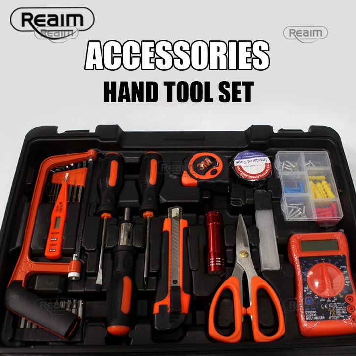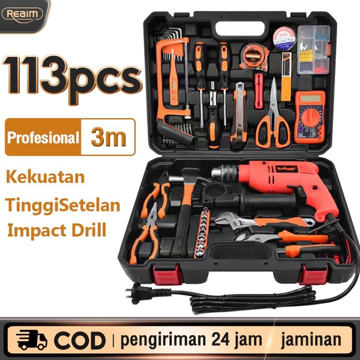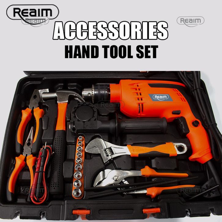 REAIM Hand Toolset Tool Kit Set Toolbox Cordless Drill Set Kotak Alat Multifungsi Bor Listrik Set Obeng Tukang