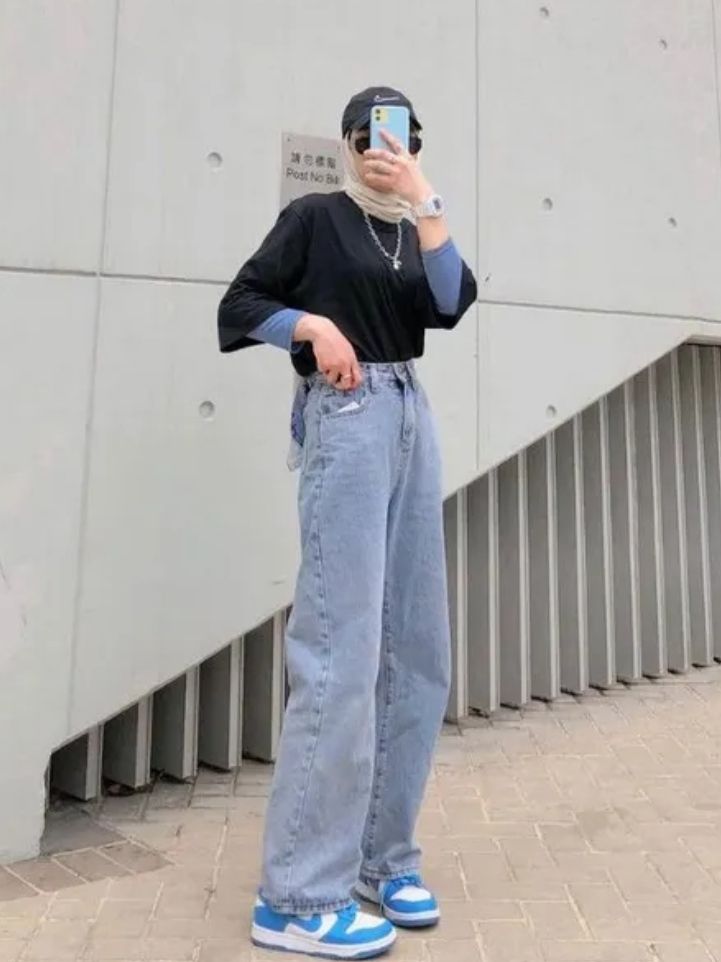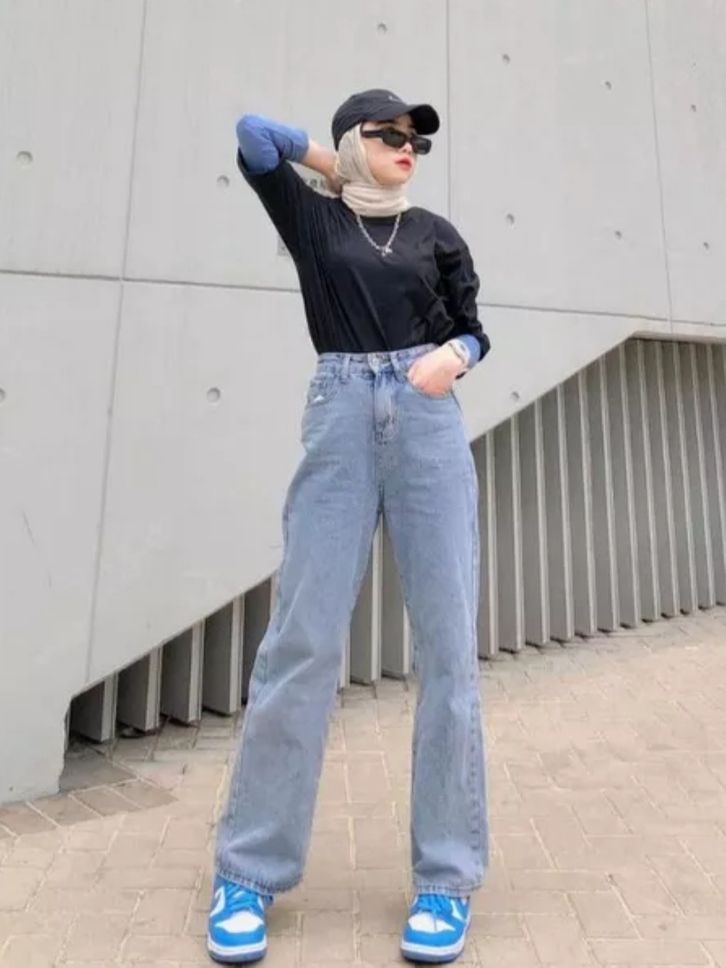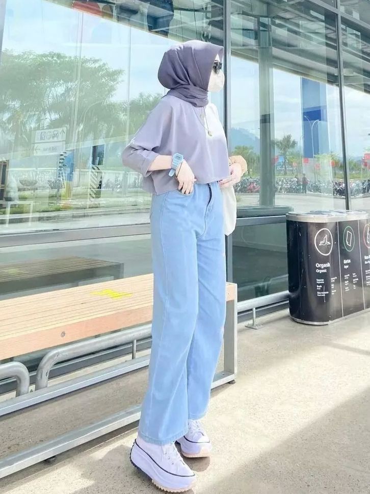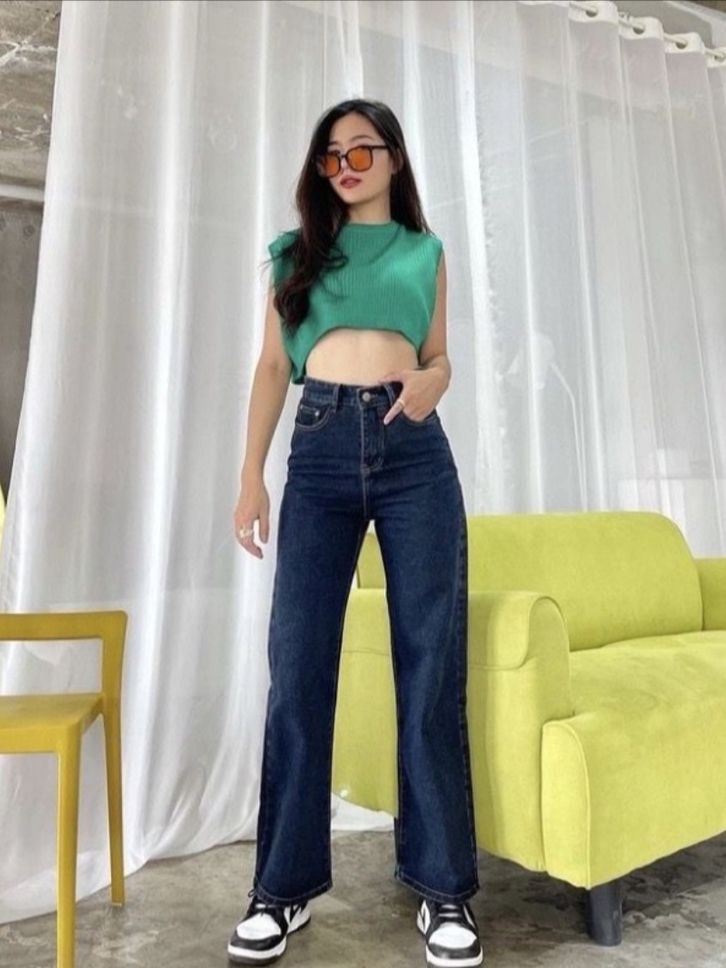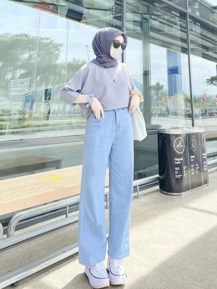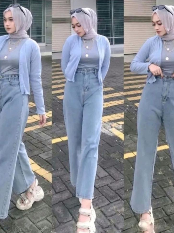 Celana Kulot Jeans Wanita Highwaist Korea Style Terbaru Acid Grey Panjang 100