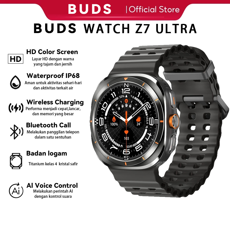 BUDS Z7 Ultra Outdoor Smartwatch |Ultra-large screen|Compass|IP68 Waterproof | Custom Wallpaper |Metal body | Wireless c