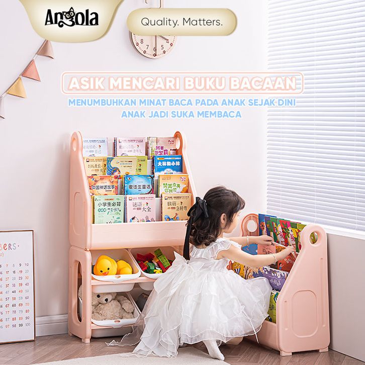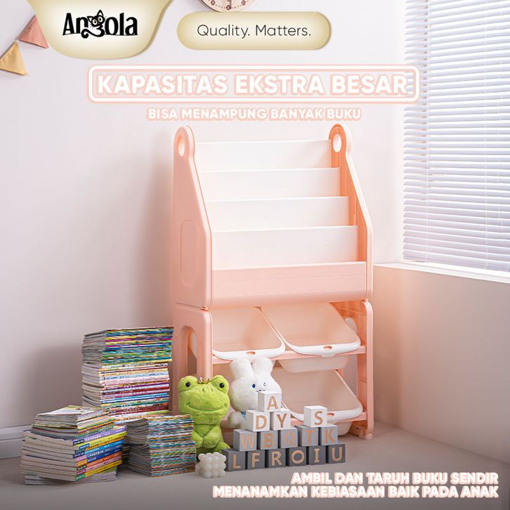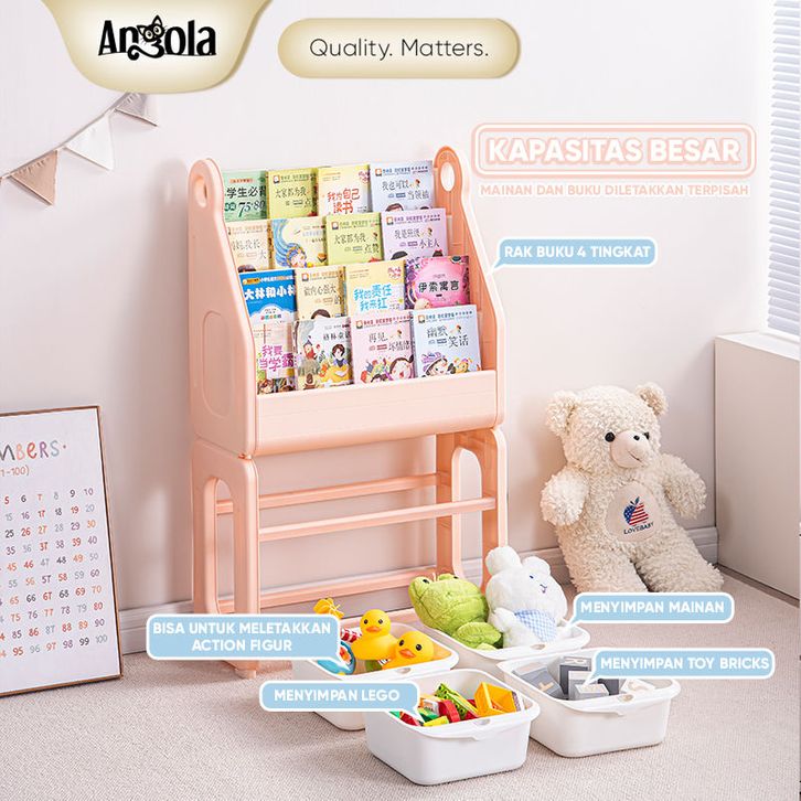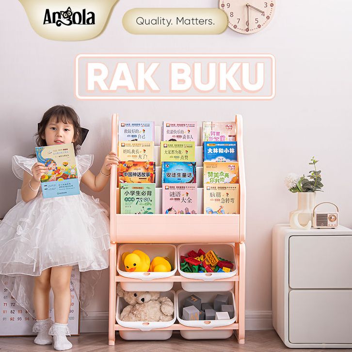 Angola Rak Buku Anak 4 Tingkat Baby Duck Bookshelf Rack/Tempat Penyimpanan Buku Laci Mainan C01/C02