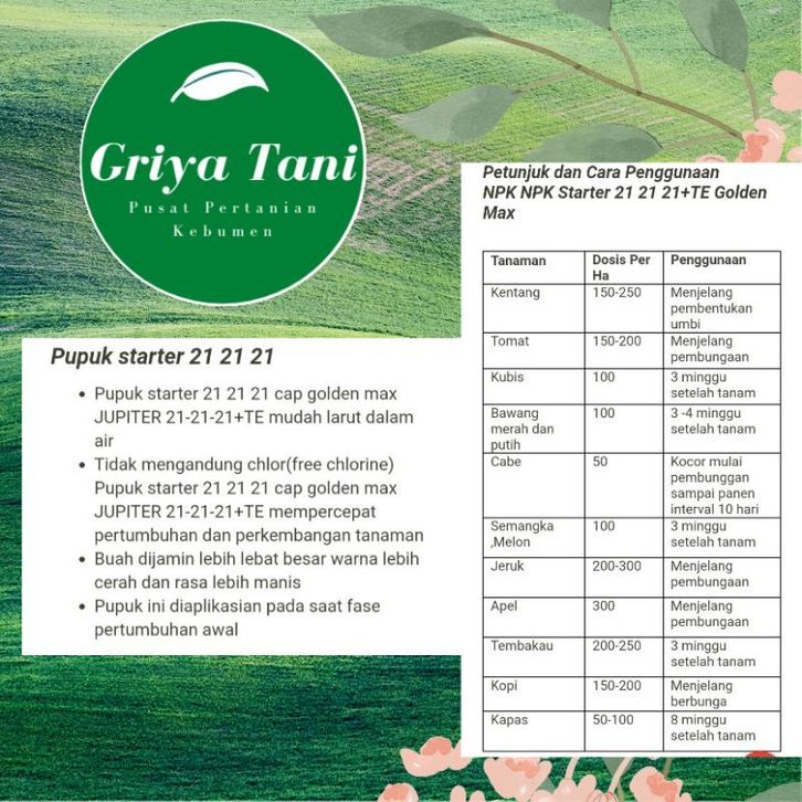 Pupuk Golden Max Starter 21-21-21 TE Pupuk Fase Pertumbuhan Awal KEm-asan Repack 50 gr
