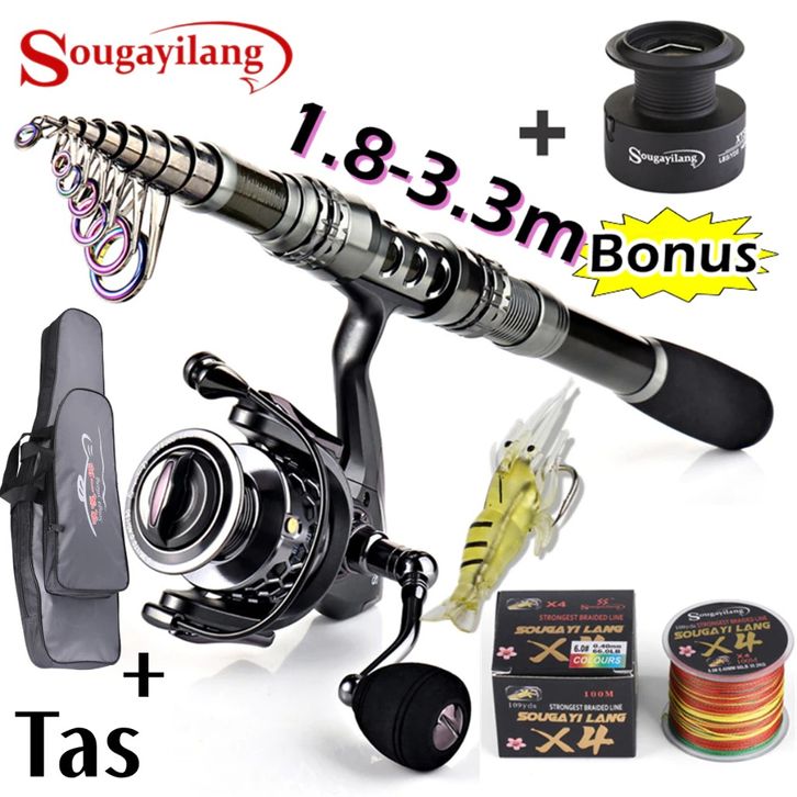 Joran Pancing Sougayilang Set 1.8-3.3M Carbon 1000-5000 Reel Pancing 5.5:1 Joran Set Lengkap Joran Telescopic Laut