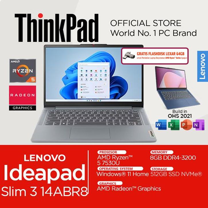 Lenovo Ideapad Slim 3 Ryzen 5 7530U 8GB 512GB SSD Windows 11 OHS IPS 14 inch FHD 04ID 05ID 7530
