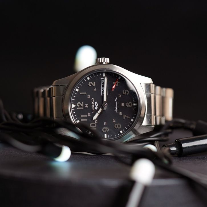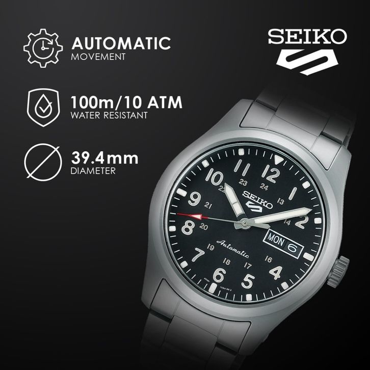 Jam Tangan Pria Seiko 5 Sports Field Military Style Black Stainless SRPG27K1 SRPG27 Automatic Original