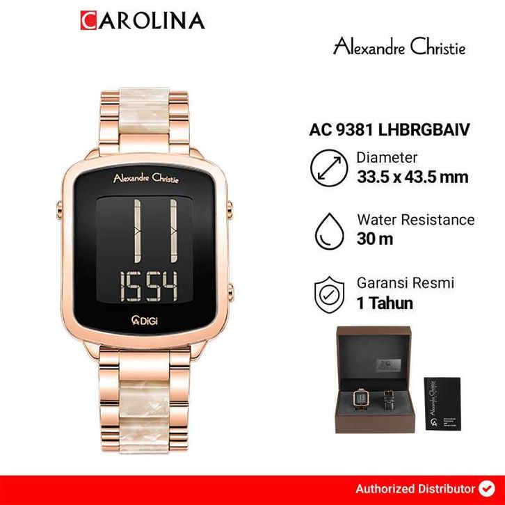 Jam Tangan Wanita Alexandre Christie DIGI AC 9381 LHBRGBAIV Digital Dial Dual Tone Stainless Steel Strap
