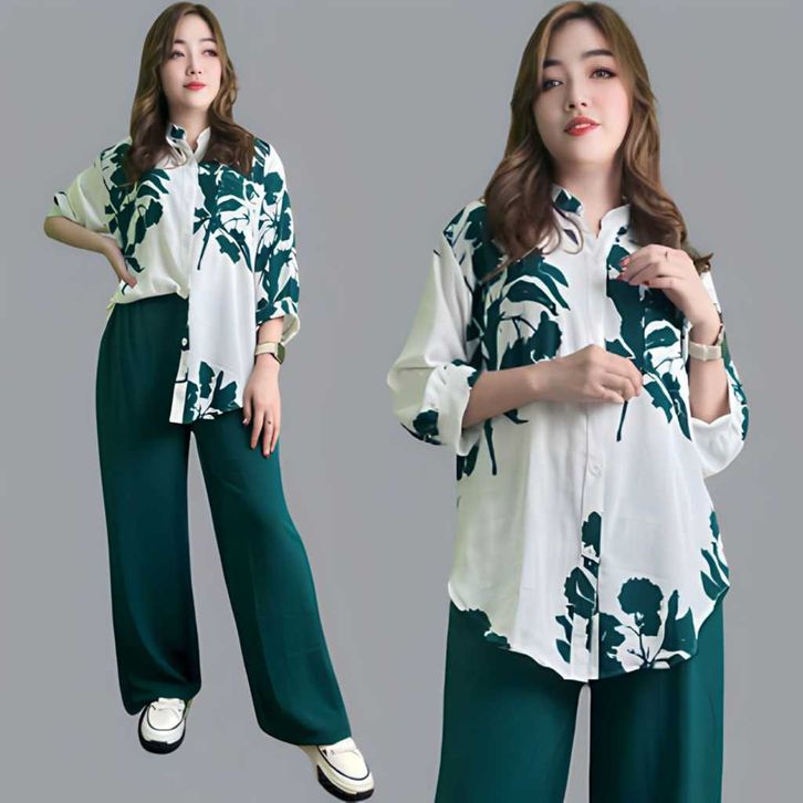 OTTILA SETELAN CRINCLE WANITA KEKINIAN LD 120 ATASAN KEMEJA OVAL CELANA LURUS BAHAN CRINCLE AIRFLOW