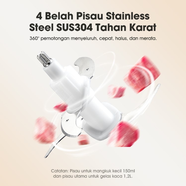 Chopper Samono SW-MFC300 1,2L + 3 Cup Penggiling Daging Bumbu Dengan Pengupas Wadah Kaca Warna Pink Ungu Original Mewah