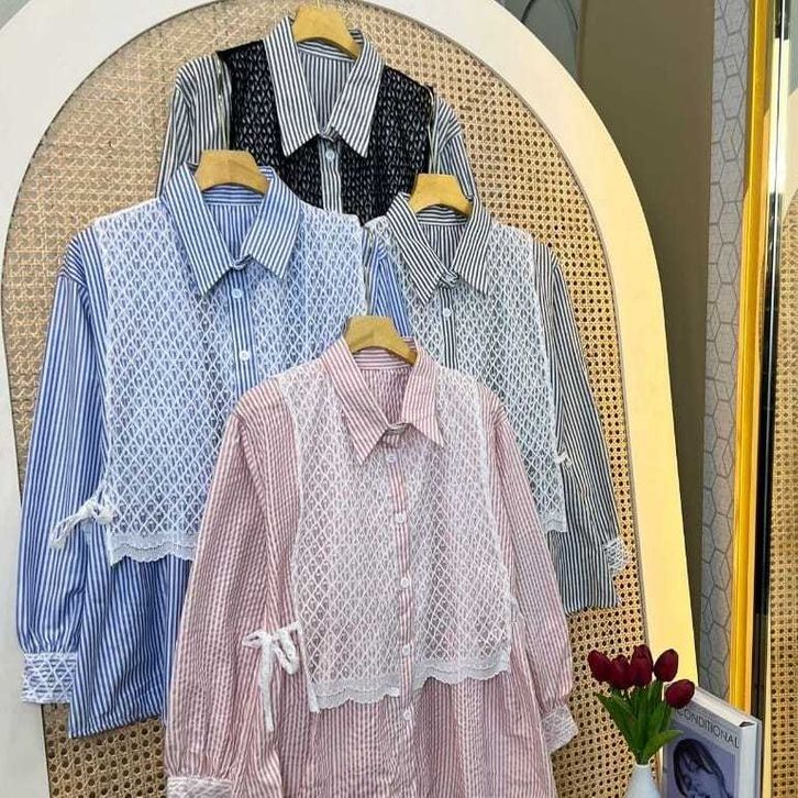 MAIRA BLOUSE SALUR KOMBINASI BRUKAT KEKINIAN KEMEJA MOTIF SALUR TERBARU