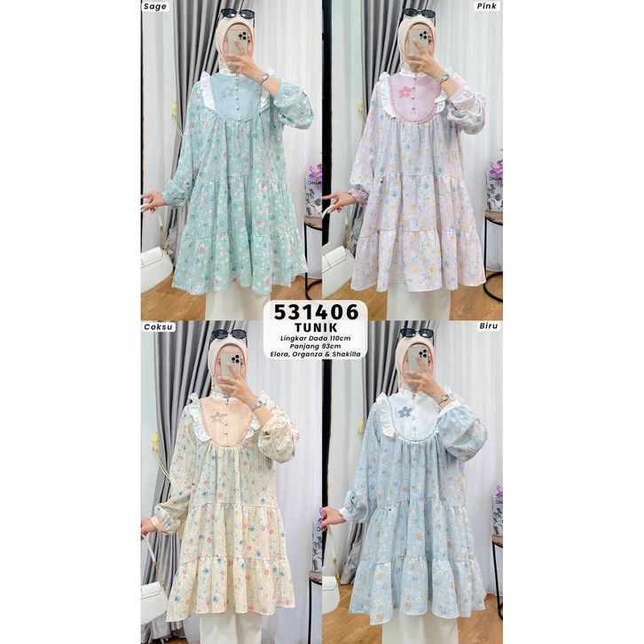 EXTU HERITAGE - Maura Tunik Busui Motif Cantik Kombinasi Organza Elegan | Tunik Elora Fit to XL Adem - 531406