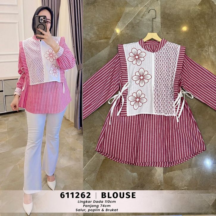 EXTU HERITAGE - Maura Tunik Busui Motif Cantik Kombinasi Organza Elegan | Tunik Elora Fit to XL Adem - 611262
