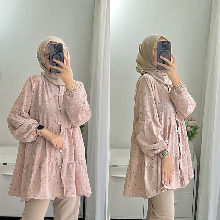 NAMIRA BLOUSE| Atasan Wanita Korean look Kancing aktif Vintage|| Blouse Babby Doll Motif || Blouse Vintage