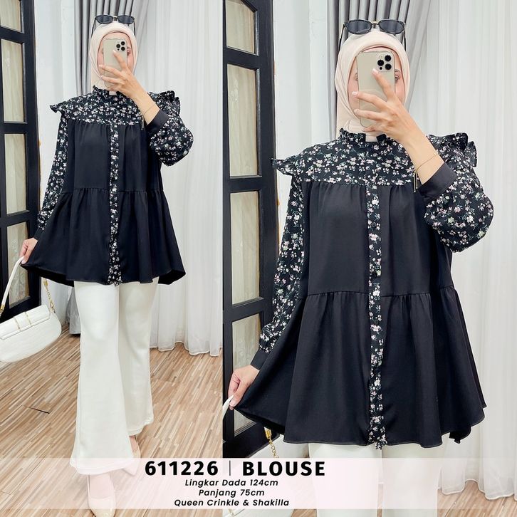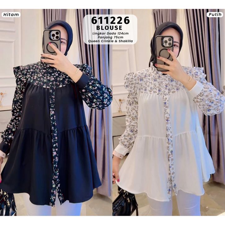 EXTU HERITAGE - RAISHA BLOUSE CRINGKLE MOTIF BUNGA | BLOUSE WANITA ADEM BUSUI FRIENDLY - 611226, 511391