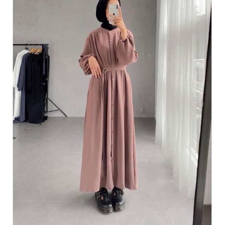 GAMIS WANITA REMAJA KEYSHA DRESS CRINGKEL AIRFLOW DENGAN TALI PINGGANG ELEGANT
