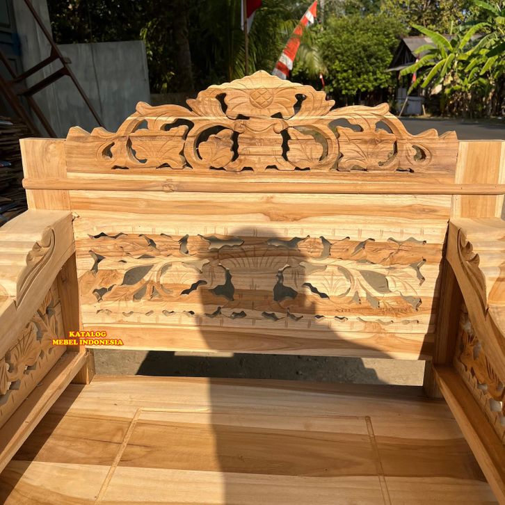 Kursi Tamu Motif Ukir Bagong Kerawang Furniture Set Kayu Jati Asli Desain Elegan