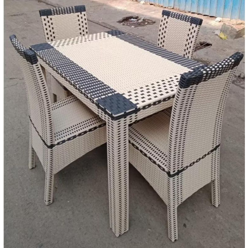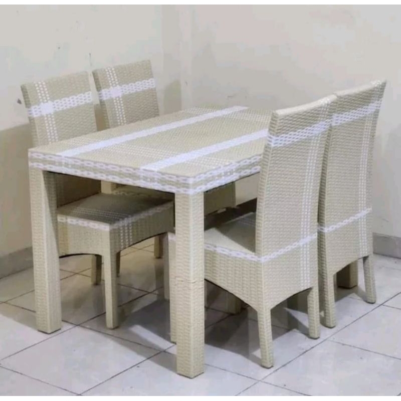 Meja Makan Rotan Kaca 4 Kursi Murah / Meja Makan 4 Kursi Minimalis / Meja Makan Set Terlaris Best Seller GRATIS ONGKIR