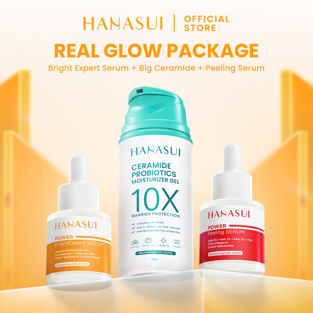 [Mall] Hanasui Combo Brightening - Big Ceramide Moist Bright Expert Serum Peeling Serum Mencerahkan & Melembapkan Kulit