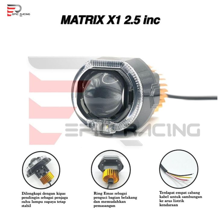 Projie Biled Matrix ukuran 2.5inc Body Black High Low Kuning di Lengkapi Kipas Pendingin