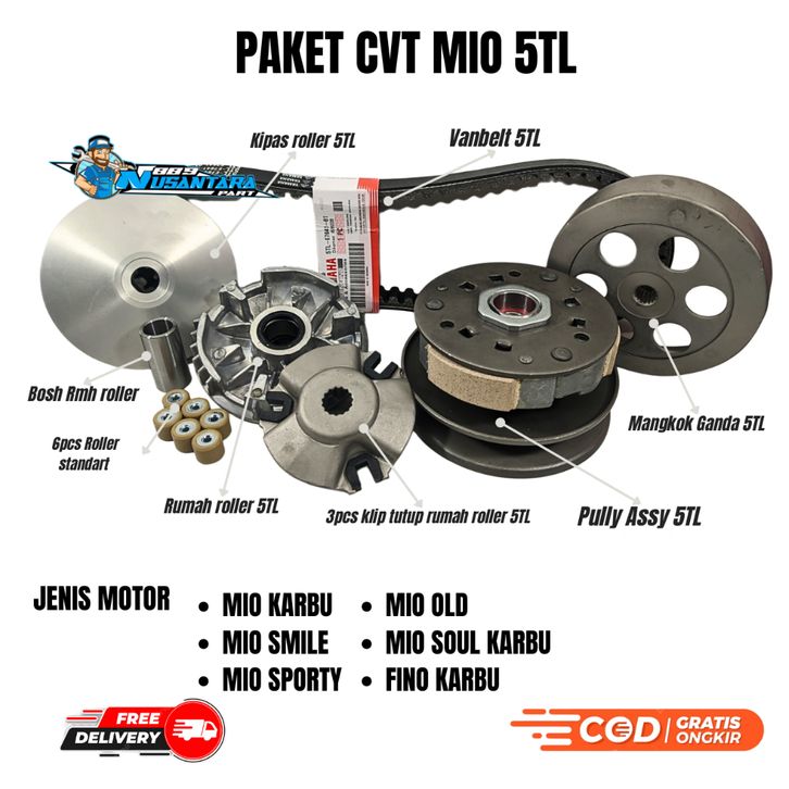 PAKET CVT LENGKAP 5TL 4 ITEM PULLY ASSY MIO SPORTY + RUMAH ROLLER ASSY + KIPAS + VANBELT ONLY MIO / MIO SOUL / MIO SMILE