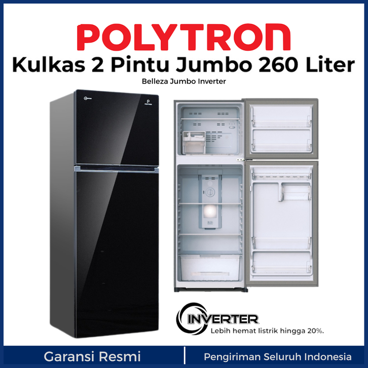 KULKAS POLYTRON BELLEZA 2 PINTU JUMBO INVERTER 260 240 220 LITER PRW 29VX LEMARI ES FREEZER BESAR TANPA BUNGA ES MURAH