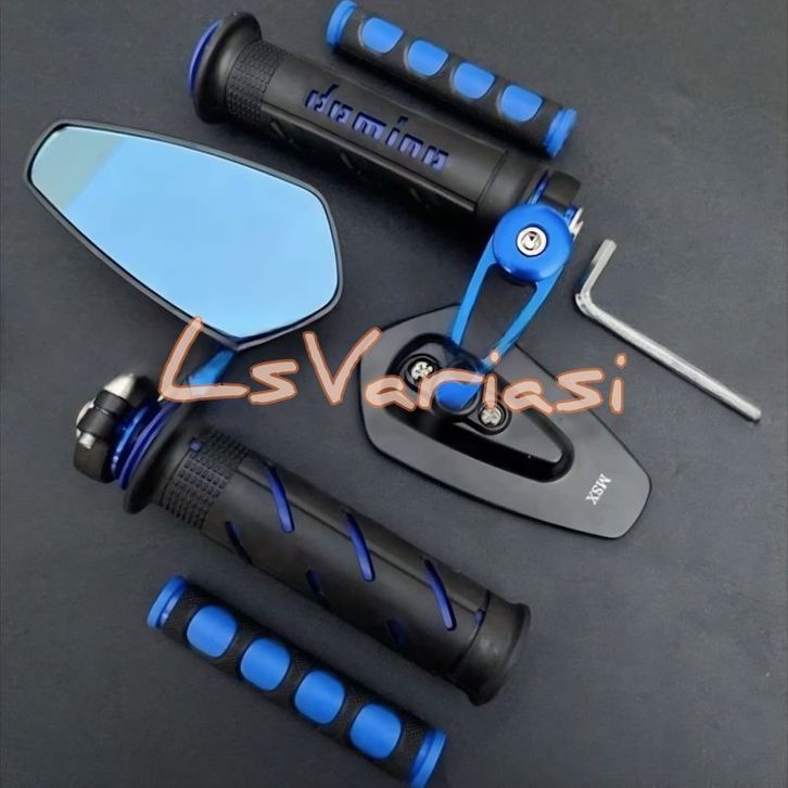 Paket 3in1 Spion Jalu Oval Plus Karet Handle Jari Plus Handgrip SisiK Garis Universal Semua Motor