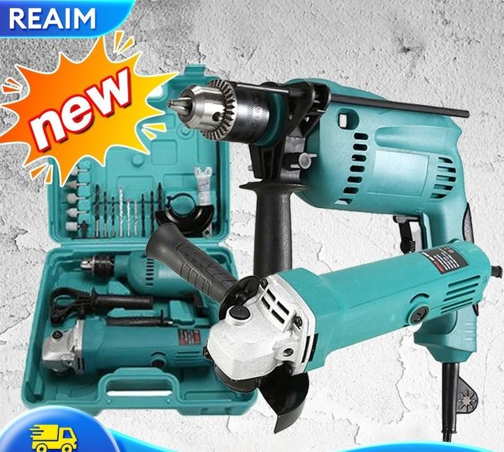 Reaim Mesin Gerinda Tangan dan Mesin Bor Listrik 13mm Set Free Koper