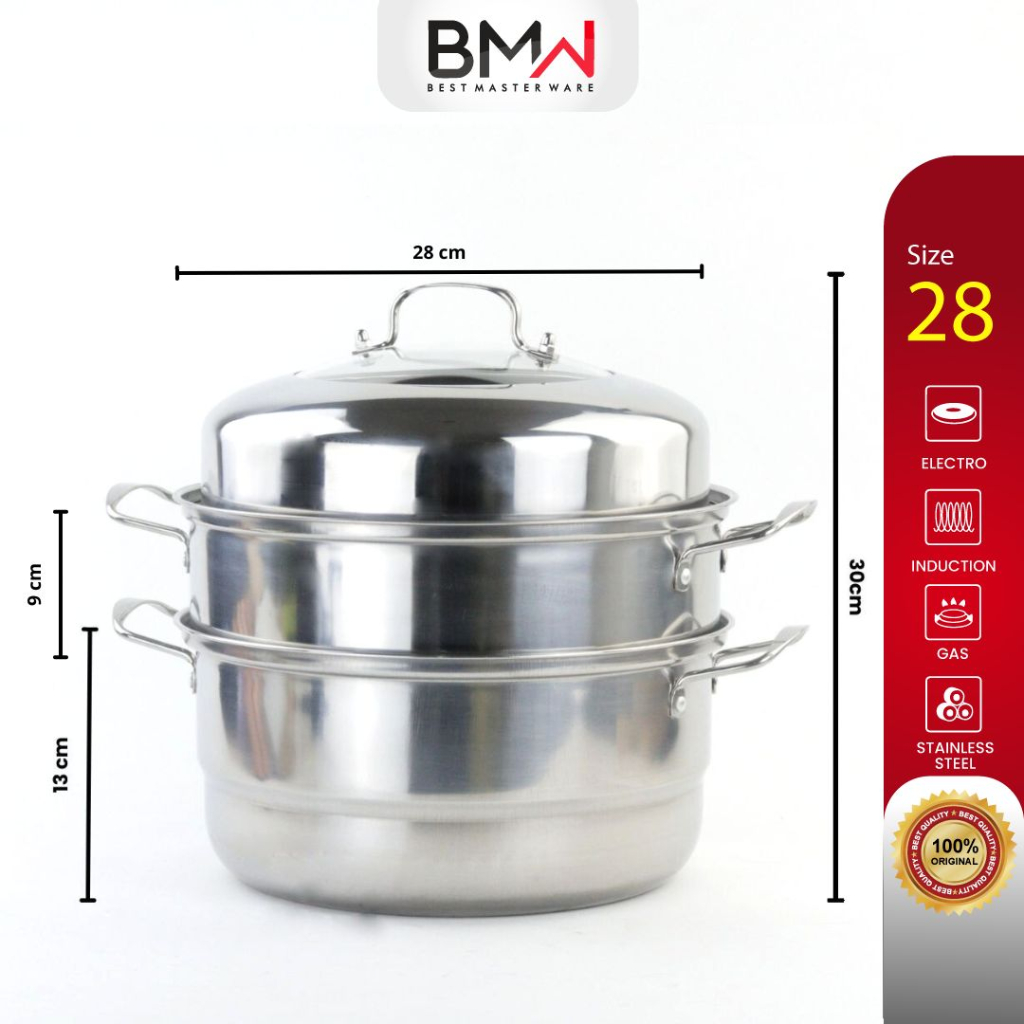 BMW Kitchen Ware Panci Kukus Siomay Dimsum Bakpao Nasi Tim Steamer Dandang Stainless Steel Panci Kukus Susun 3 Termurah