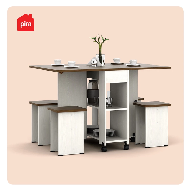 Meja Makan Lipat Modern Minimalis Allison DT120 Set Meja Kursi Makan Multifungsi Hemat Tempat & Praktis Desain Estetik